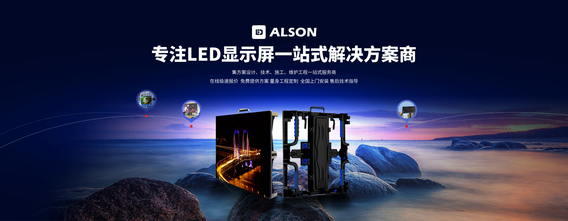 深圳市艾倫森光電(diàn)有限公司是一家以LED顯示屏、LED廣告屏、小間距LED顯示屏、LED異形屏、LED交通屏、彩幕LED顯示屏、LED租賃屏、LED高清廣告屏、小間距LED屏顯示屏、LED應用顯示屏爲主,集科研、生産(chǎn)、銷售、工程實施的綜合性企業。
