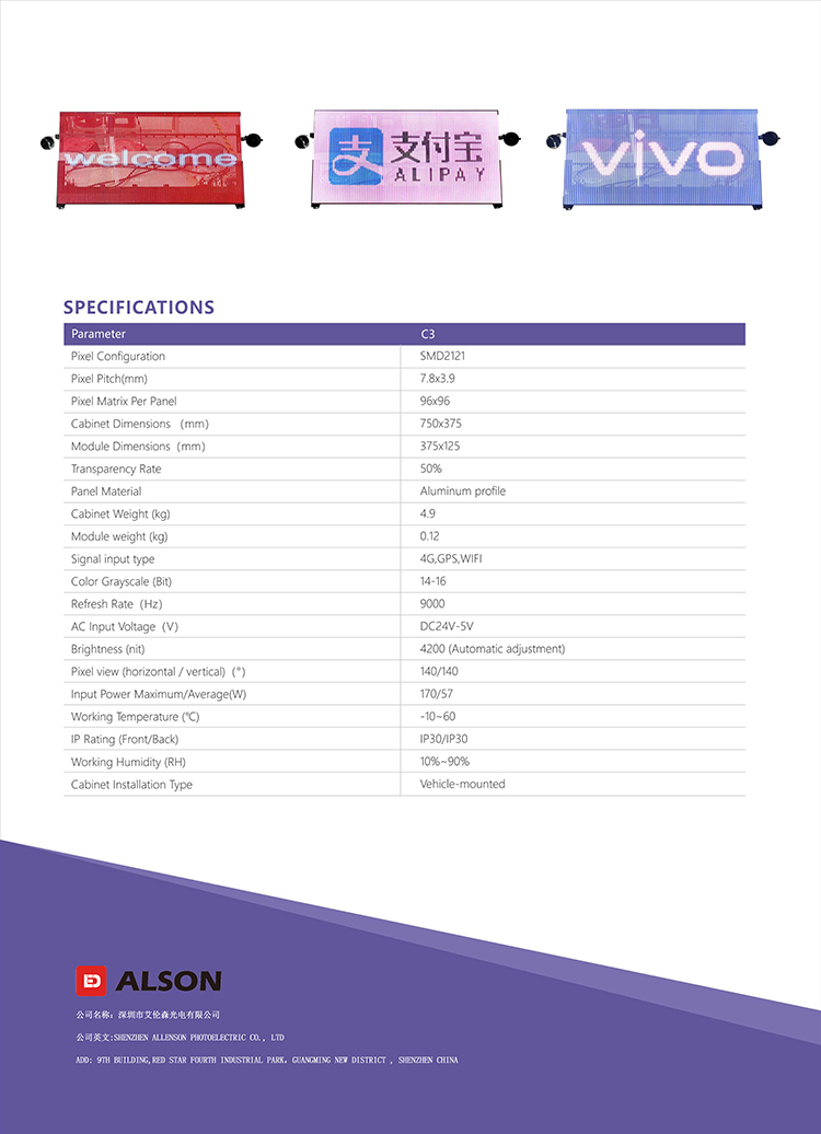 車(chē)後(hòu)窗顯示屏 ,室内P7.8-3.9車(chē)後(hòu)窗顯示屏